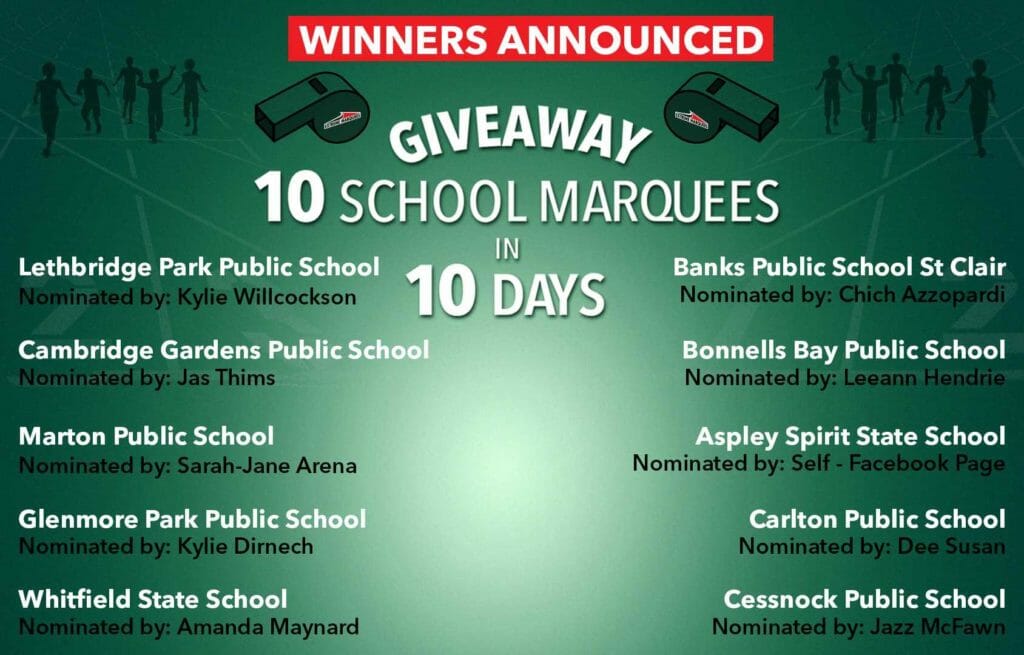 Congratulations to the following Schools who have won a 3x3m True Blue Marquee! Extreme Marquees will contact all the winners via Facebook. 1. Lethbridge Park Public School – Nominated by Kylie Willcockson 2. Cambridge Gardens Public School – Nominated by Jas Thims 3. Marton Public School – Nominated by Sarah-Jane Arena 4. Glenmore Park Public School – Nominated by Kylie Dirnech 5. Whitfield State School – Nominated by Amanda Maynard 6. Banks Public School St Clair – Nominated by Chich Azzopardi 7. Bonnells Bay Public School – Nominated by Leeann Hendrie 8. Aspley Spirit State School – Self Nominated 9.…